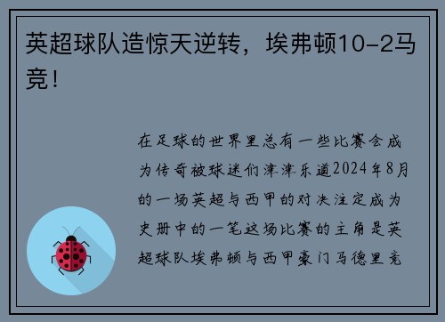 英超球队造惊天逆转,埃弗顿10-2马竞!